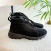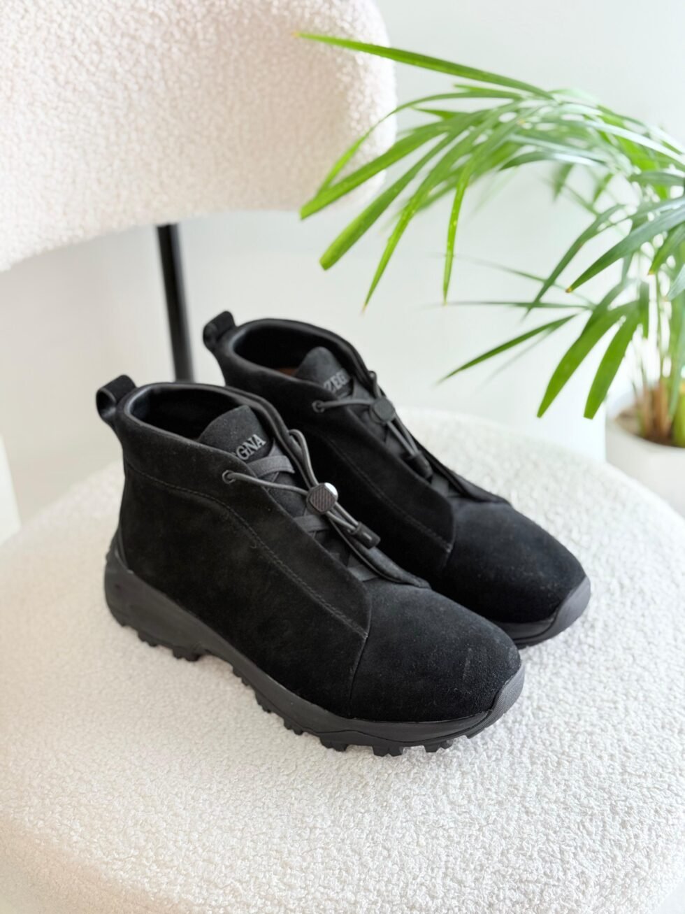 Zegna Triple Stitch Leather High Top Black Sneakers