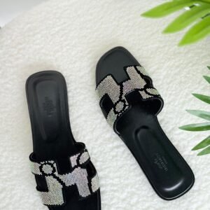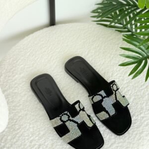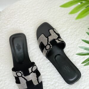 Hermes Oran Slippers in Black and White