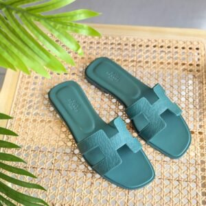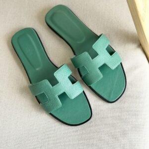 Hermes Oran Slippers in Green