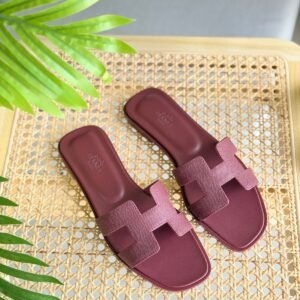 Hermes Oran Slippers in Burgundy