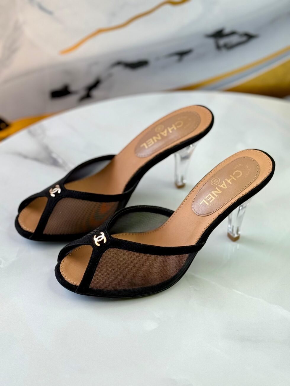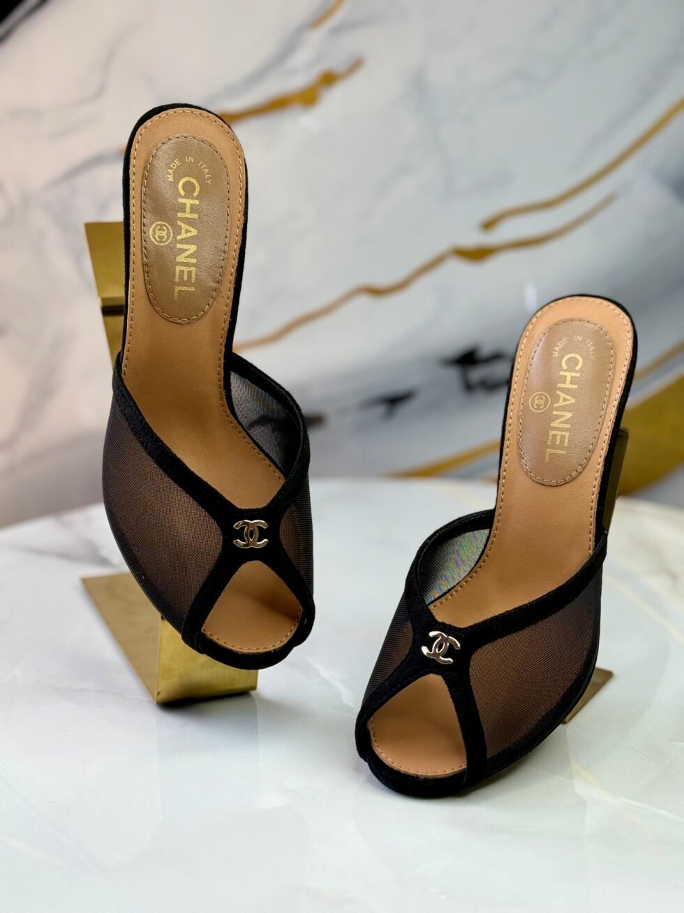 Chanel Mesh Peep Toe Heels in Black