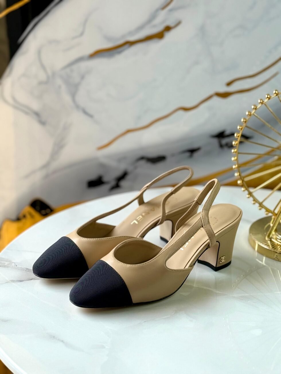 Chanel Slingback 65 Printed Lambskin Patent Leather Beige