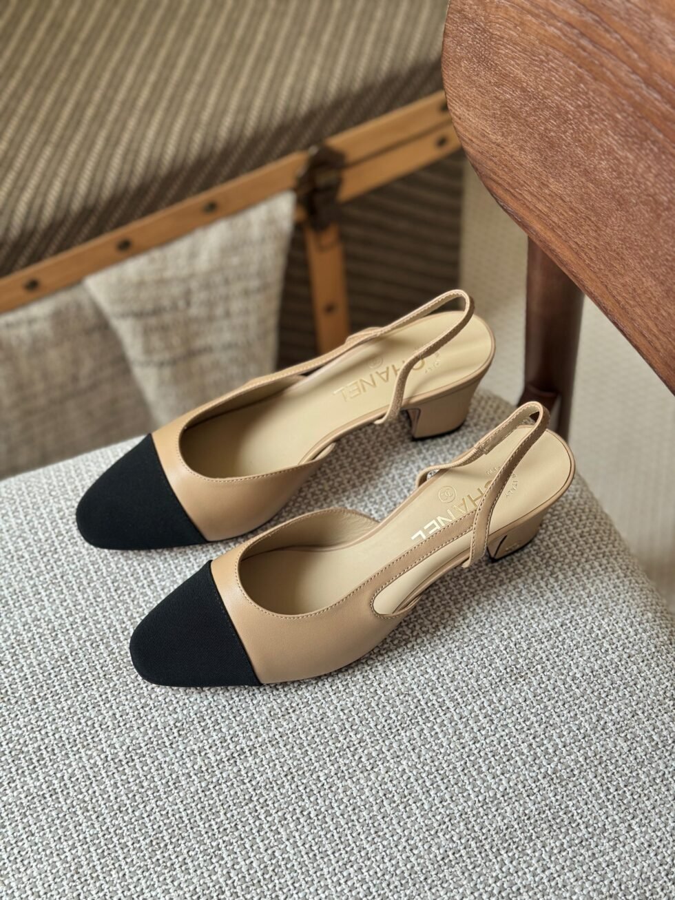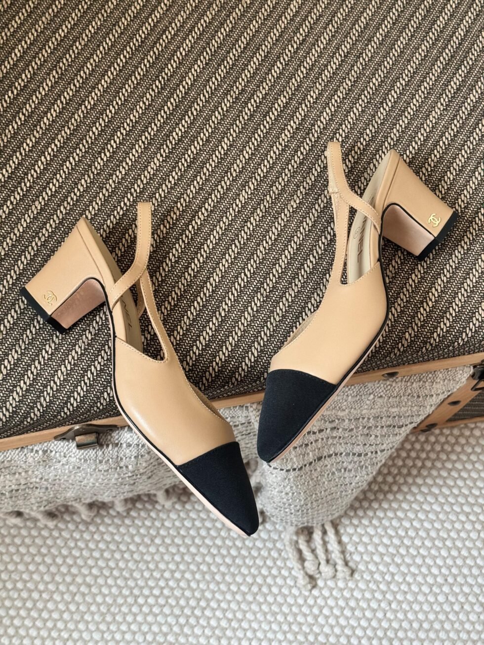 Chanel Slingback Heels in 6.5 mm in Beige and Black