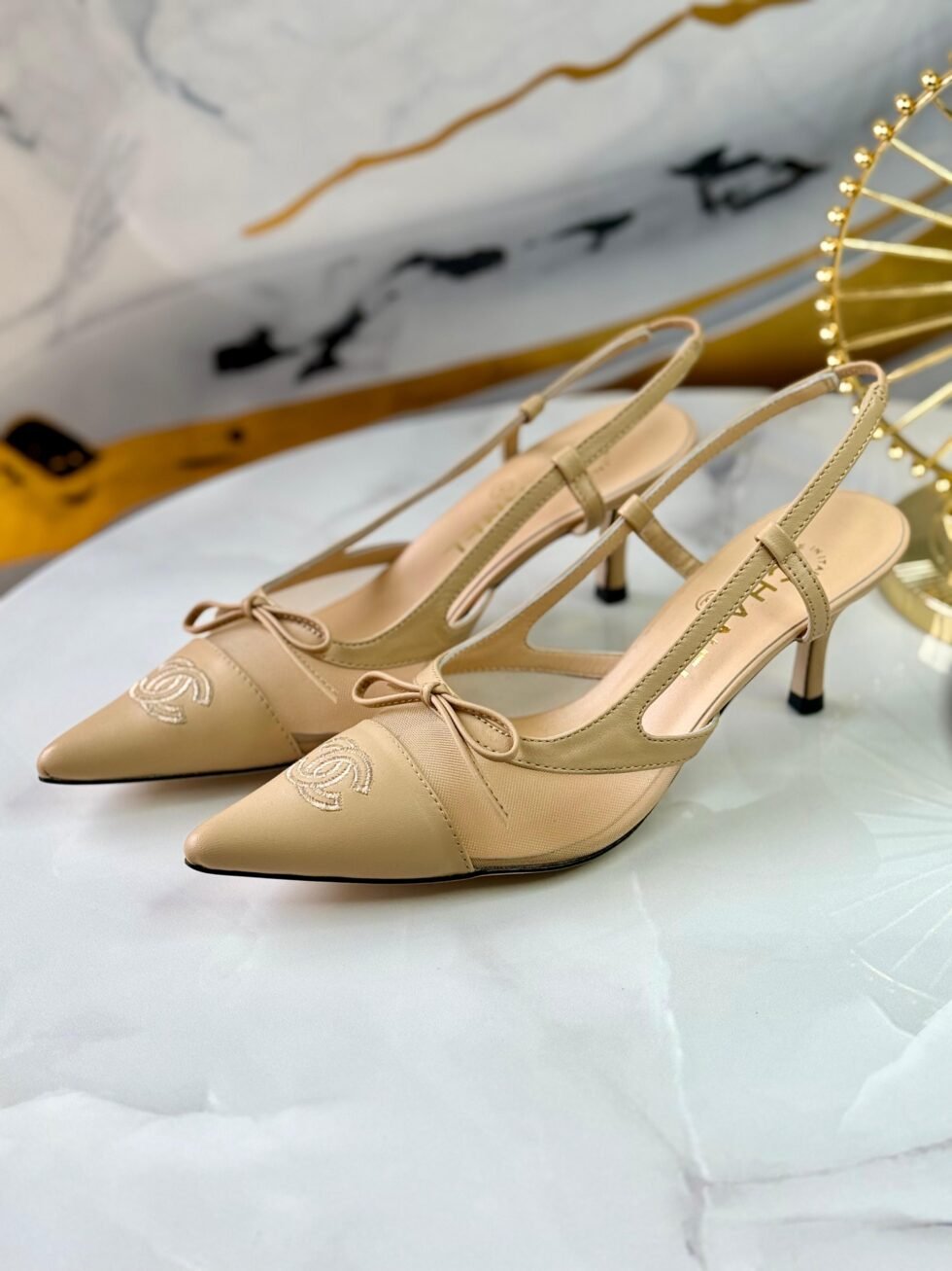 Chanel Slingback Heels in Beige