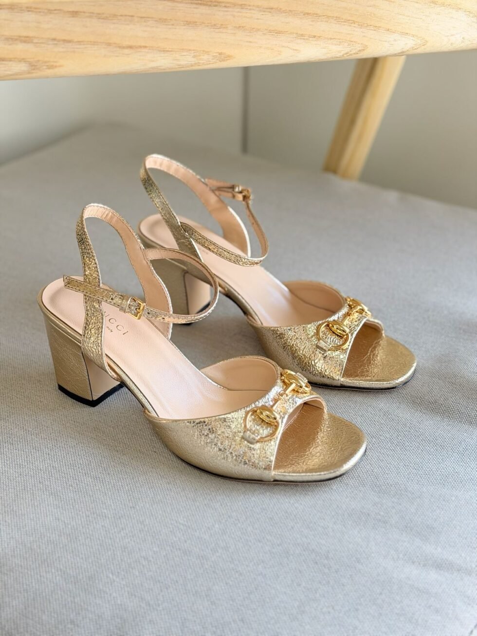 Gucci 60mm Horsebit Leather Sandals in Gold