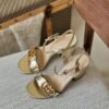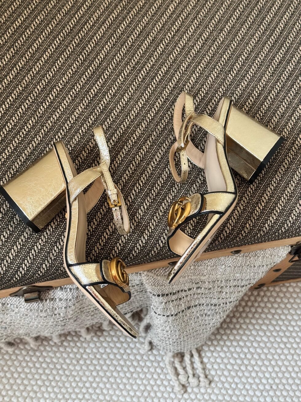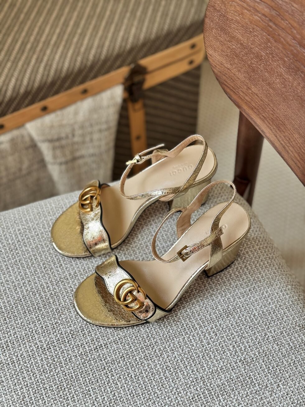Gucci Gold Leather GG Marmont Heels Sandals