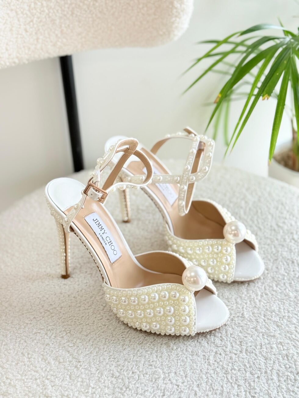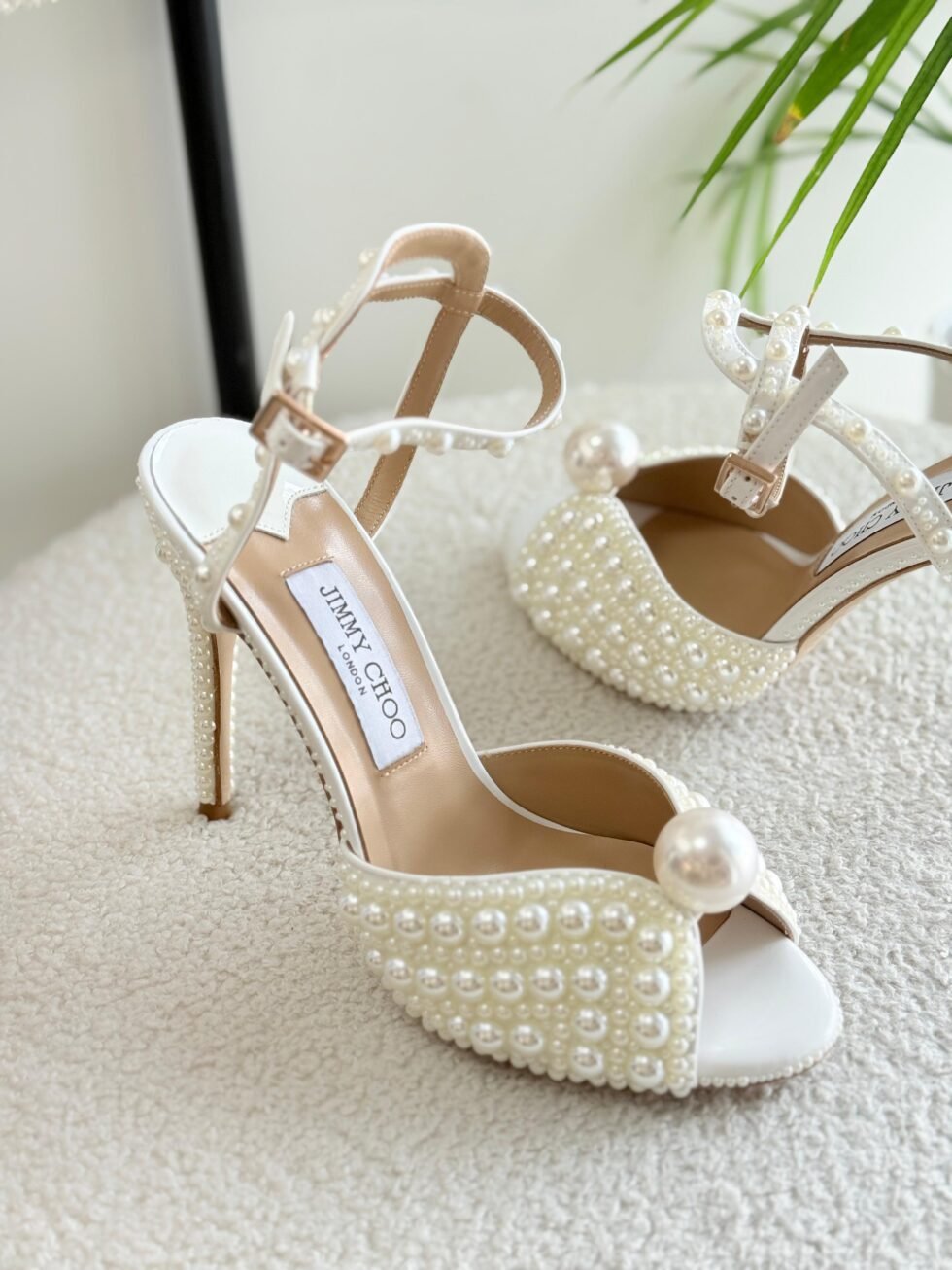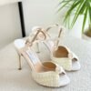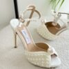 Jimmy Choo Sacora 85 Ivory Floral Lace Sandals with Pearl Detail
