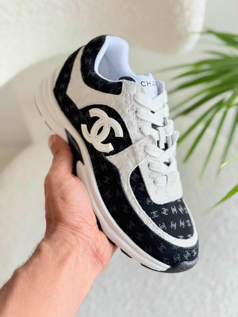 Chanel CC Logo Mesh Suede in Black and White