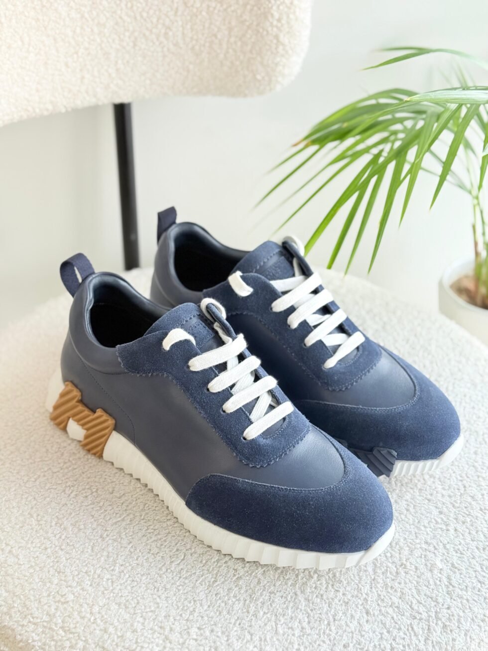 Hermes Bouncing Sneakers in Navy and Beige