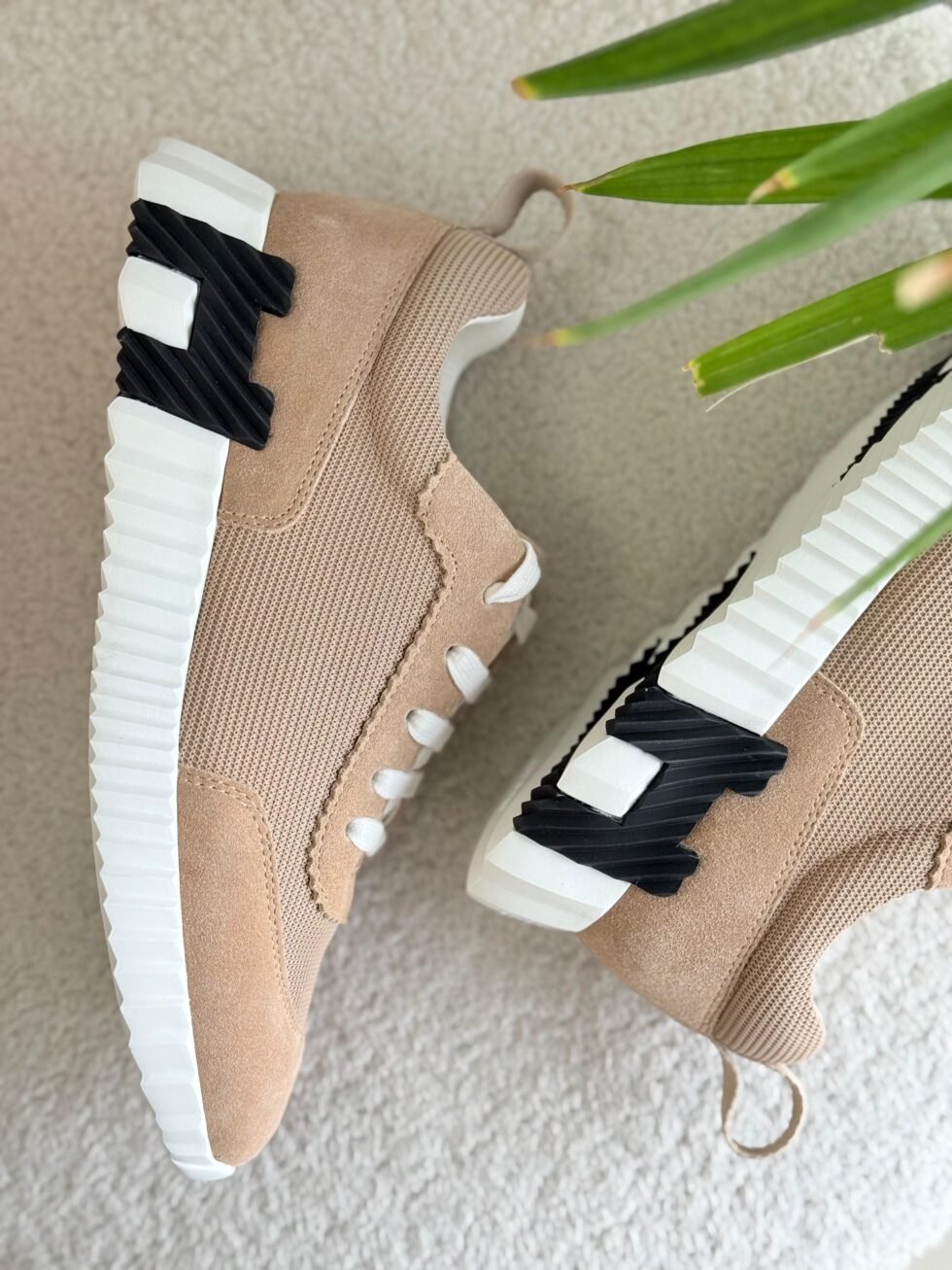 Hermes Bouncing Sneakers Mainland China in Beige and Black