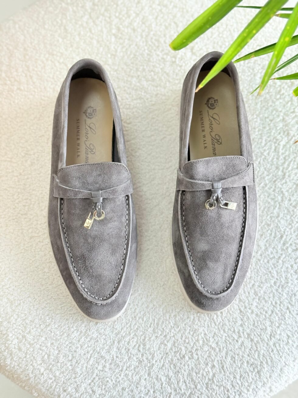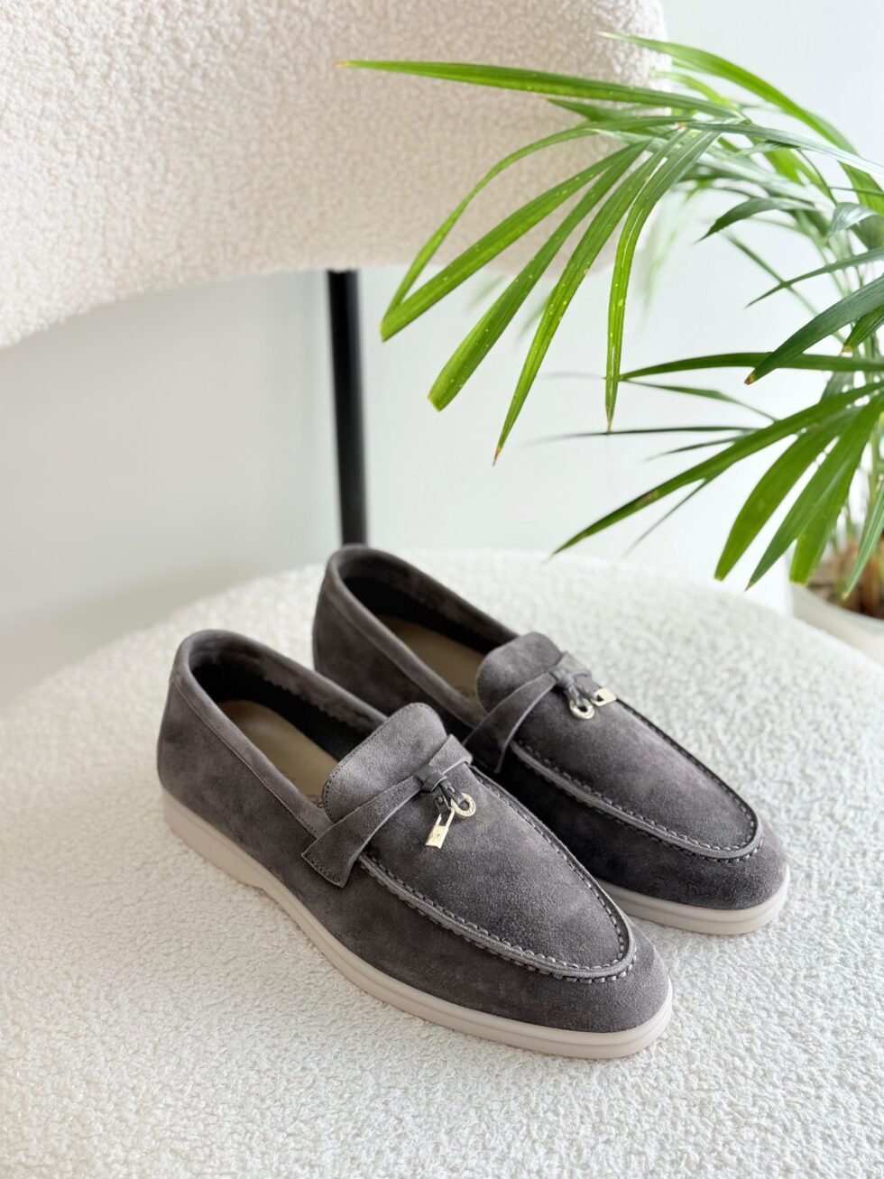 Loro Piana Dark Grey Suede Summer Charms Loafers