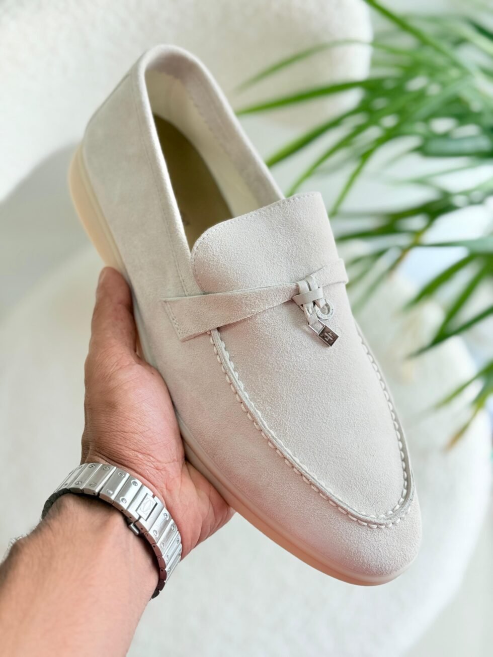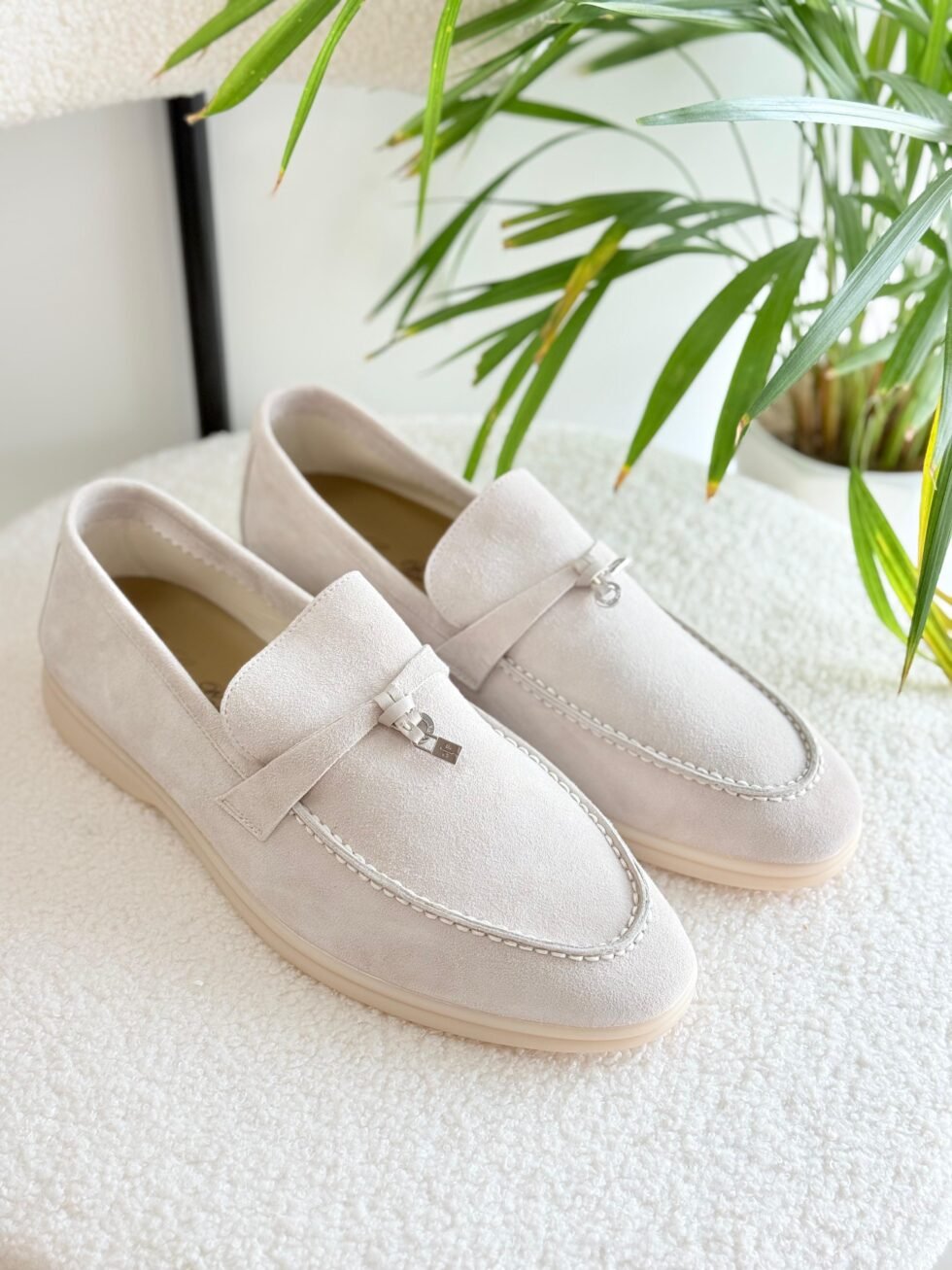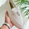 Loro Piana Light Beige Suede Summer Charms Loafers