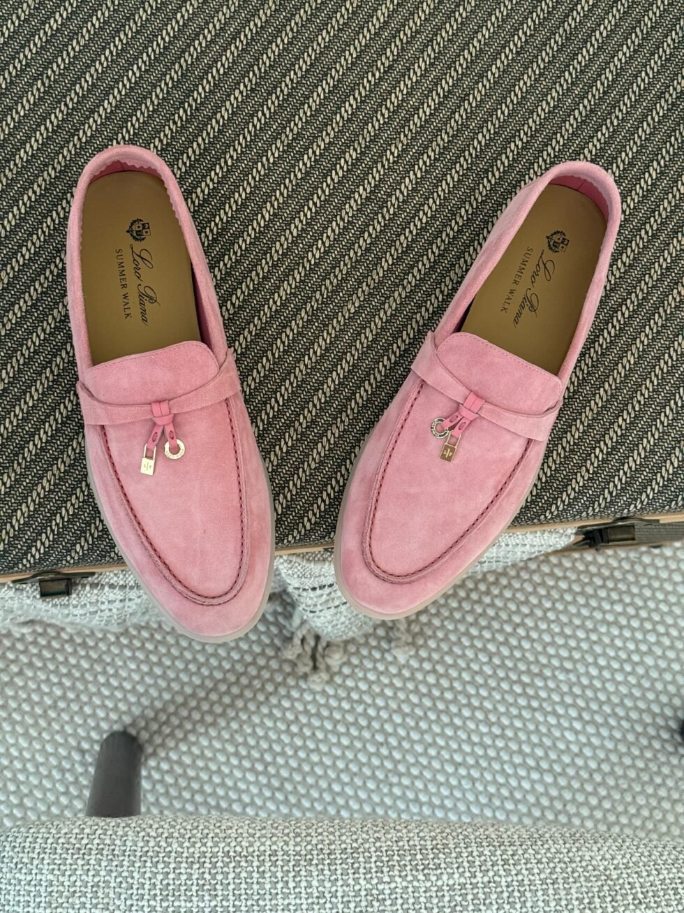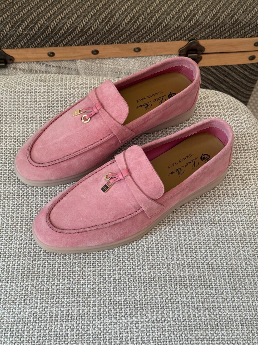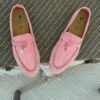 Loro Piana Pink Suede Summer Charms Loafers