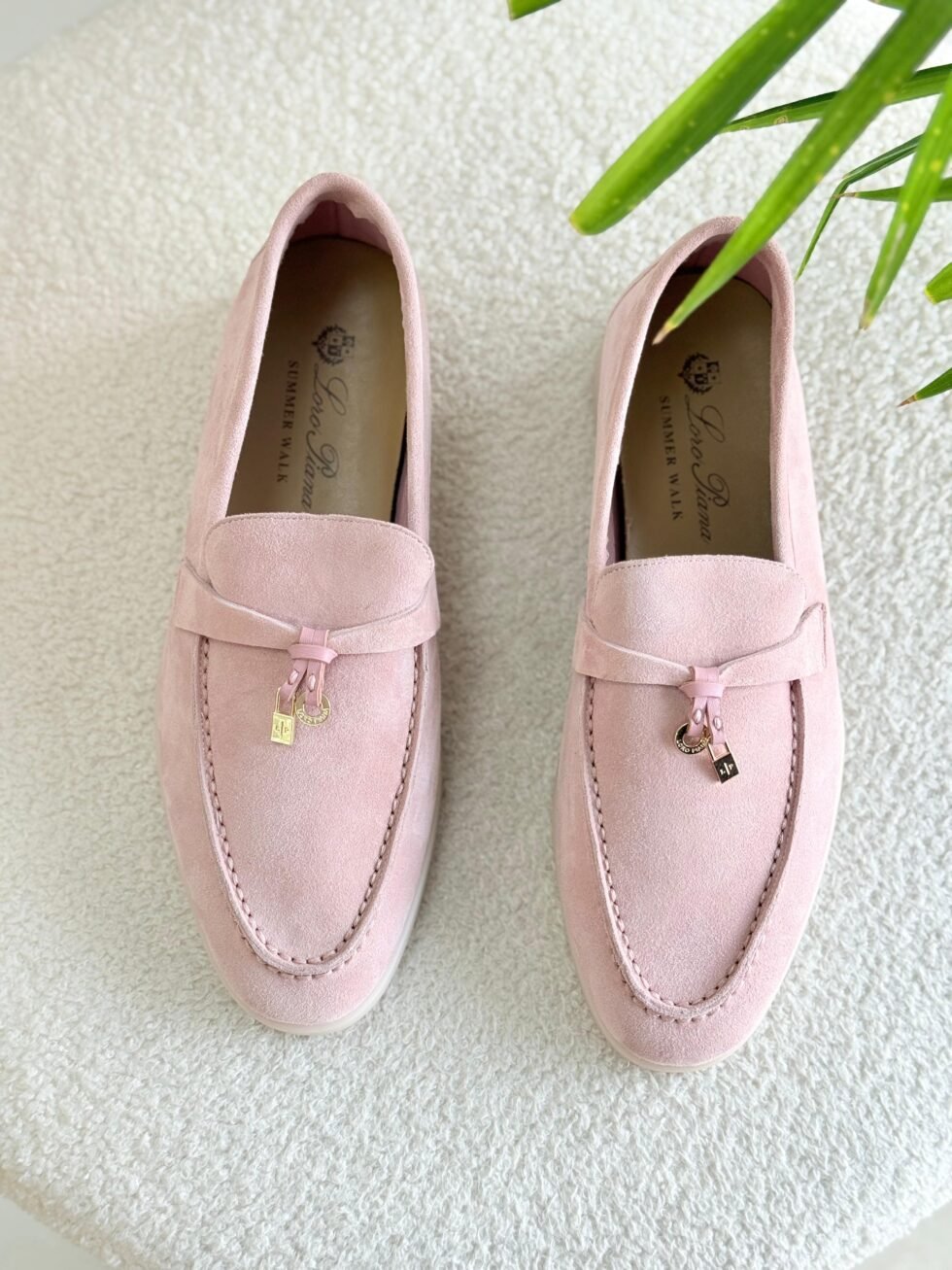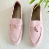 Loro Piana Pink Suede Summer Charms Loafers
