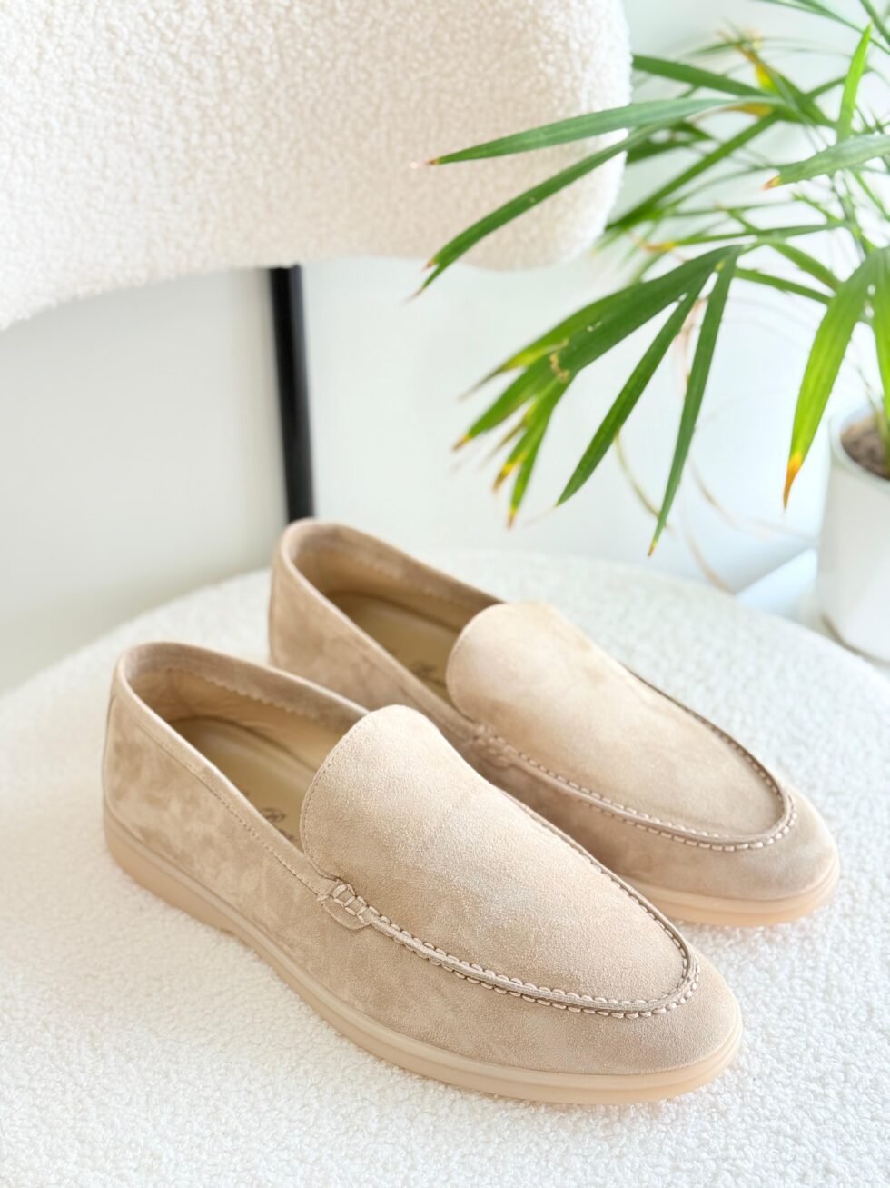 Loro Piana Split Suede Leather Shoes in Light Beige