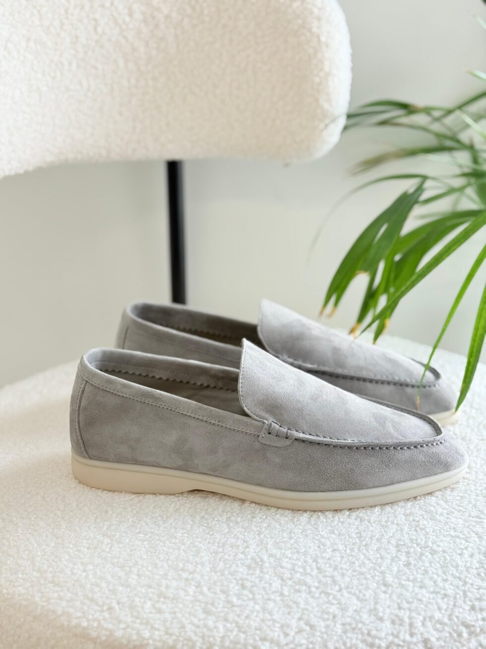 Loro Piana Split Suede Leather Shoes in Light Grey