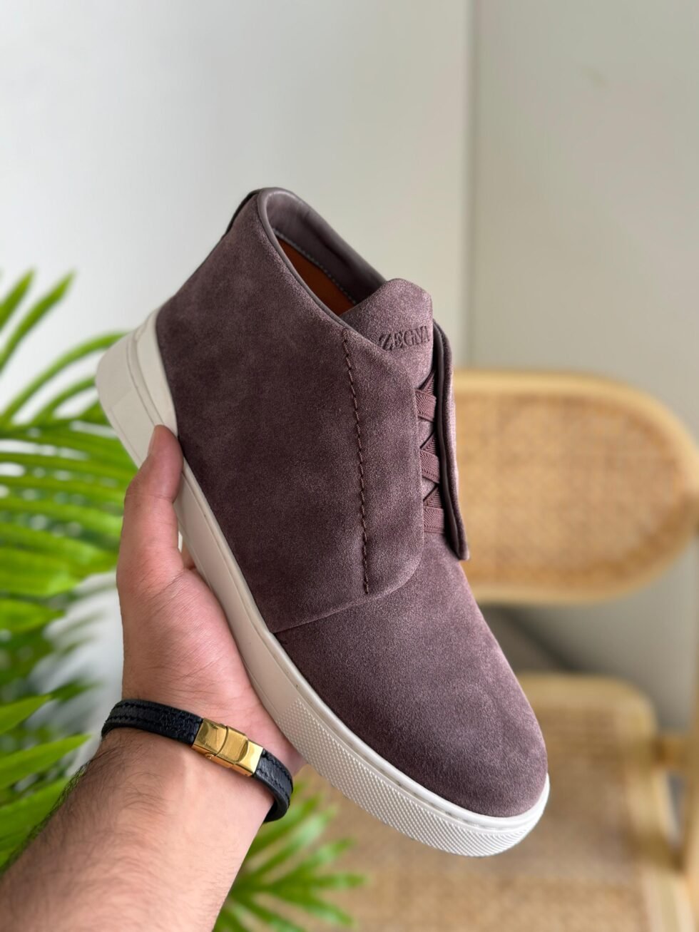 Zegna Triple Stitch Mid-Top in Brown