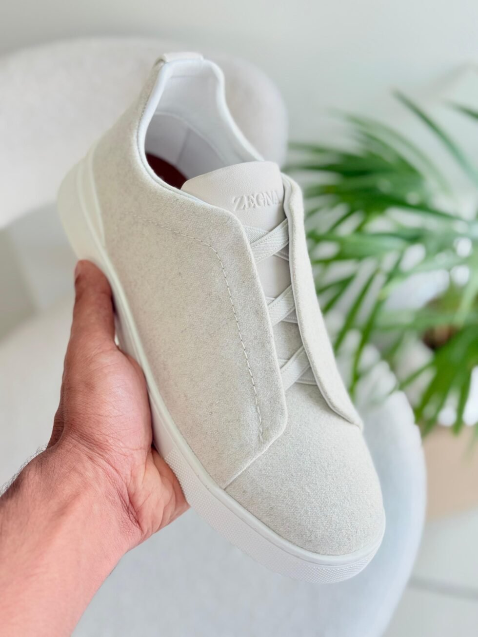 Zegna Triple Stitch Suede Sneakers in White
