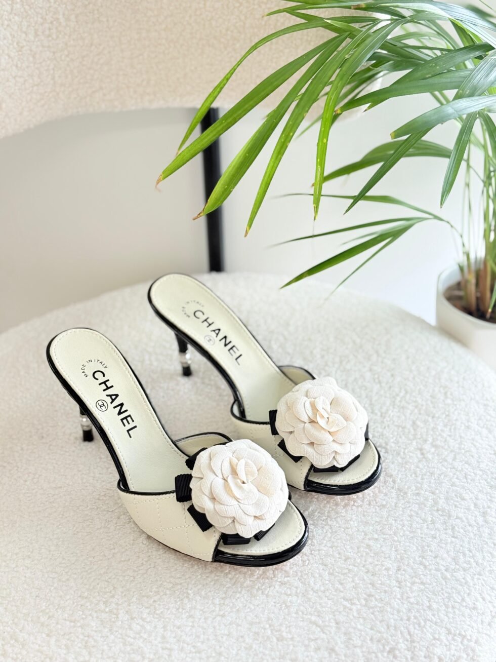 Chanel Camellia Sandals in White and Black