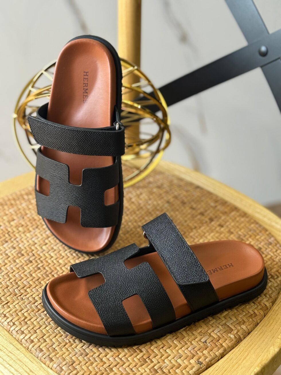 Hermès Chypre Sandals in Black and Brown
