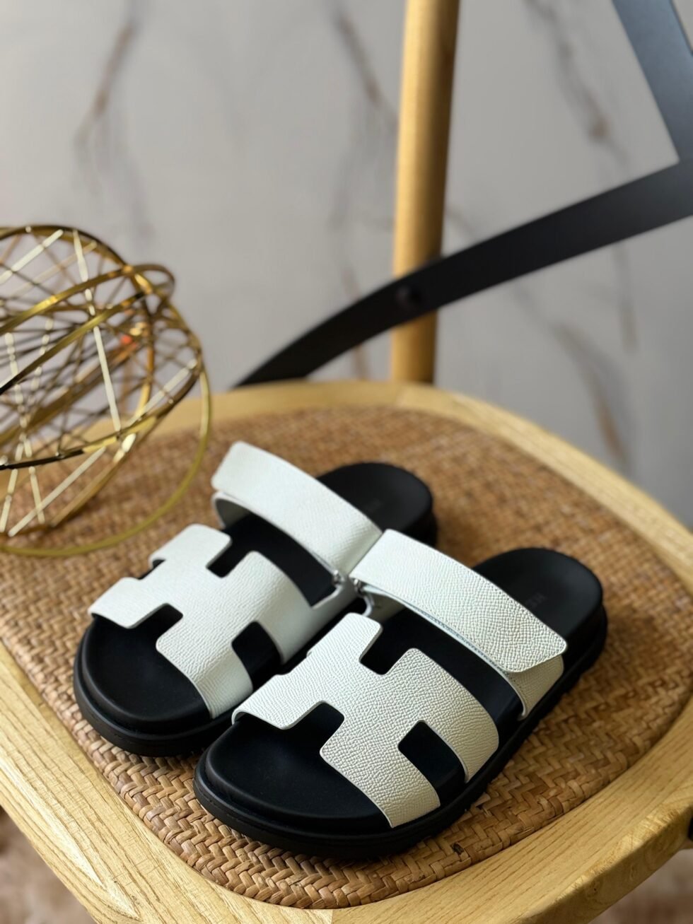 Hermès Chypre Sandals in White and Black