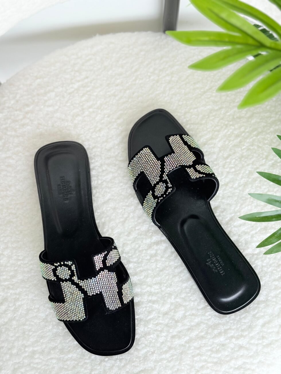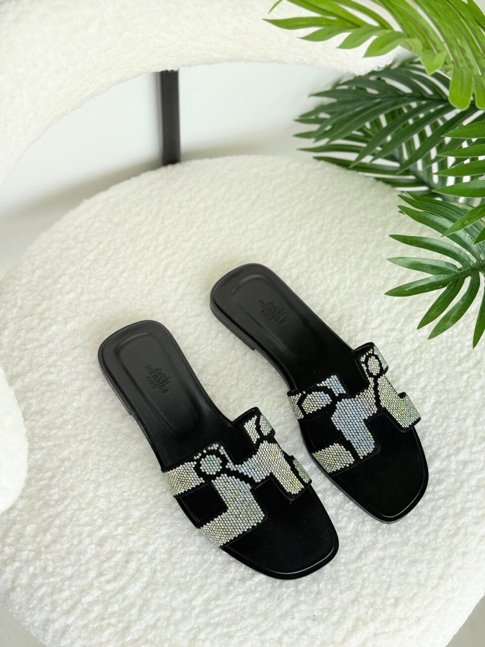 Hermes Oran Slippers in Black and White