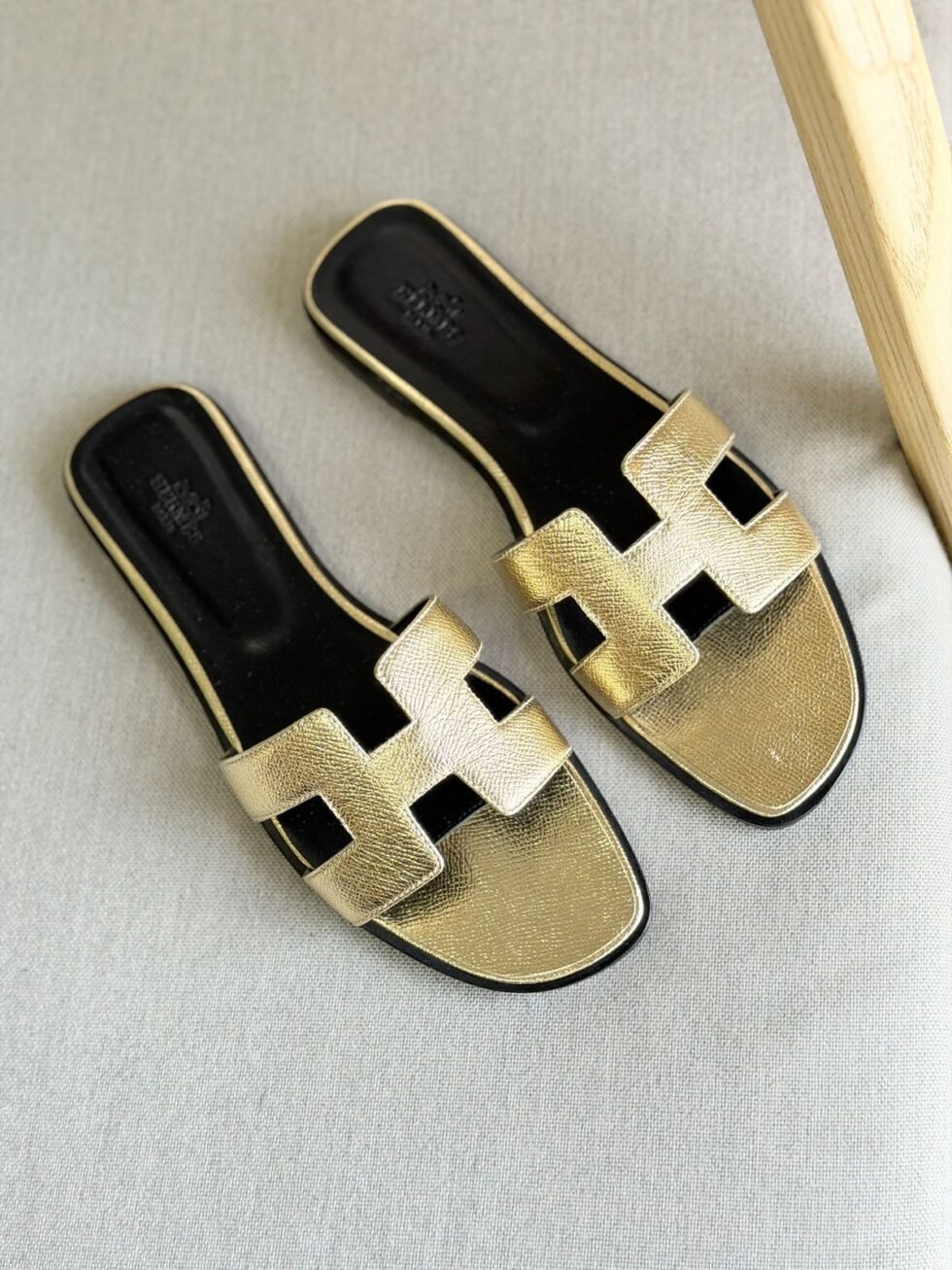 Hermes Slippers in Gold